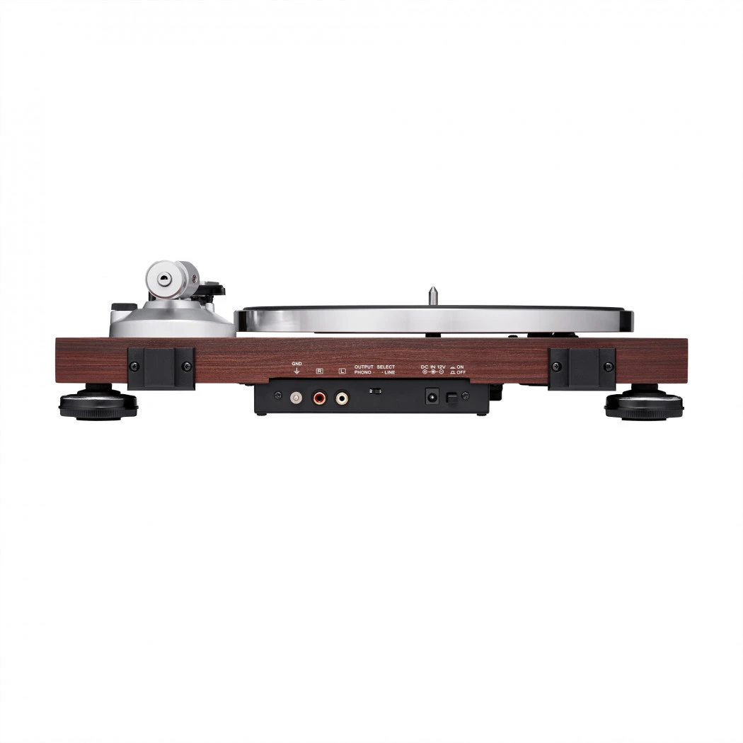 - Anti-resonance 30 mm thick MDF (medium density fiberboard) plinth with rosewood-finished wood veneer