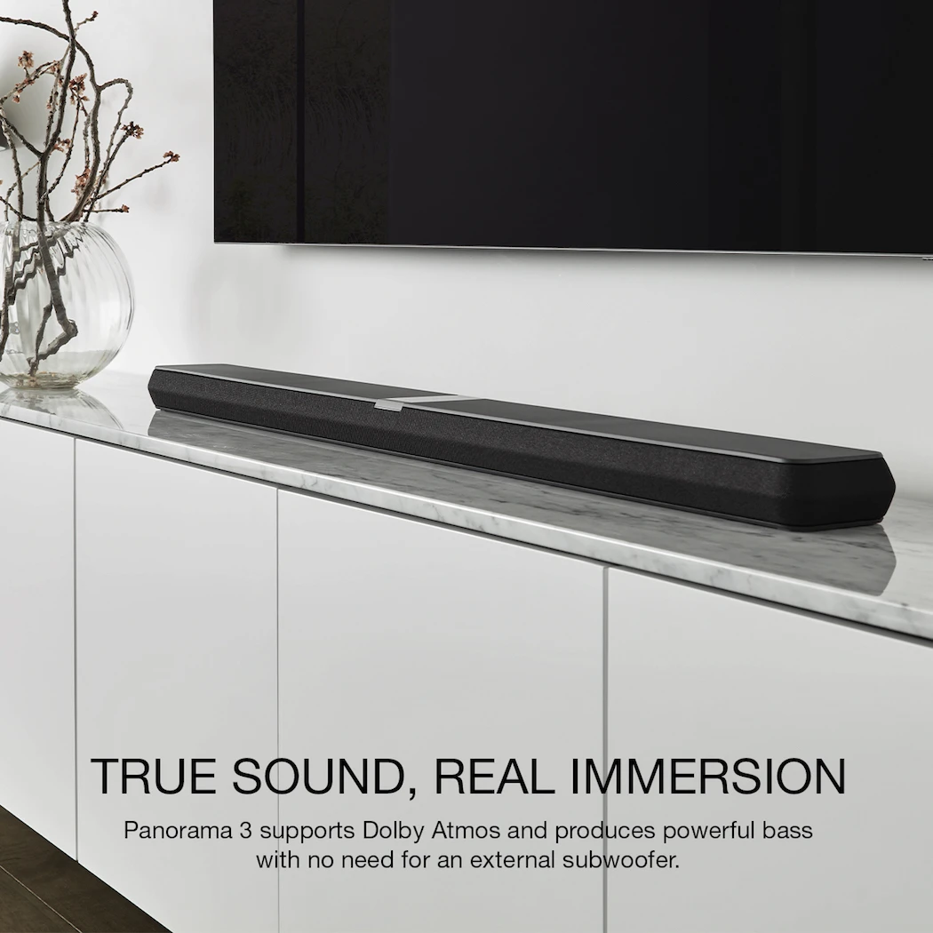 The elegant app interface gives quick network set-up, ensuring Panorama 3 is simple to both install and use. A single eARC HDMI connection to your TV is all you need to ensure both great sound and effortless control over whatever you’re watching.