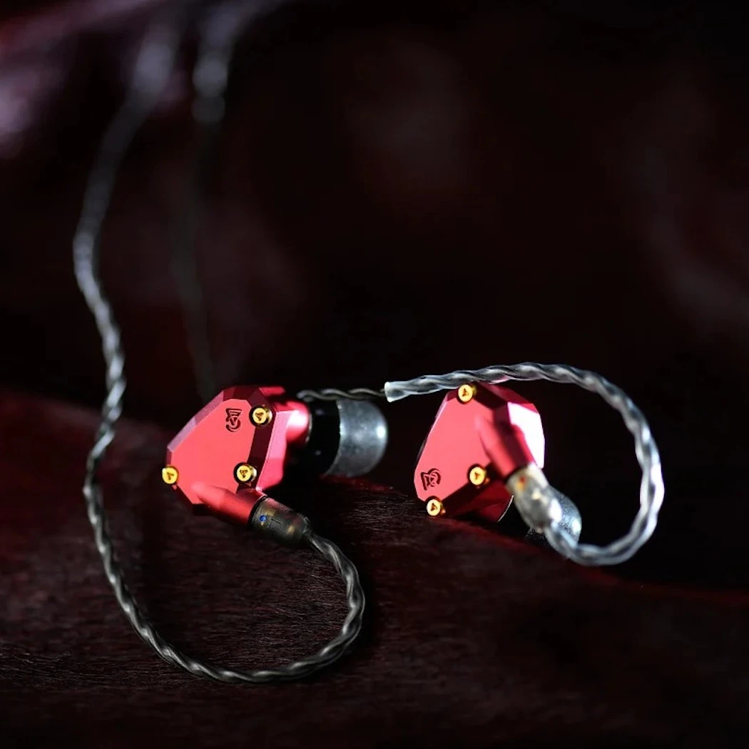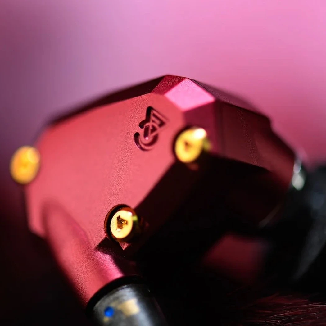 Two balanced armature drivers in Campfire’s remarkable red aluminum shells.