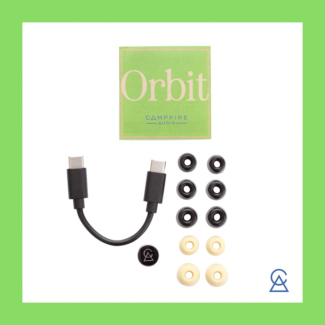 Also in the box is a universal USB-C to USB-C cable for charging when wireless options are unavailable. We’ve also included a new take on our signature Campfire Audio lapel pin. From the beginning, we’ve included a lapel pin with each earphone we’ve sold. Wear the unique Orbit pin proudly; those who know will know.