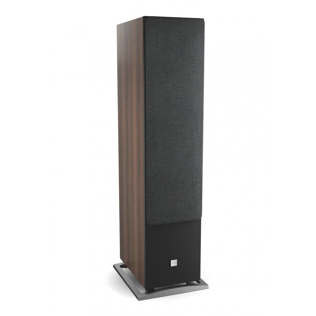 The rounded edges and grille fabric add a lighter and more contemporary look, enhanced by the elegantly shaped aluminium base on the floorstanding models.
