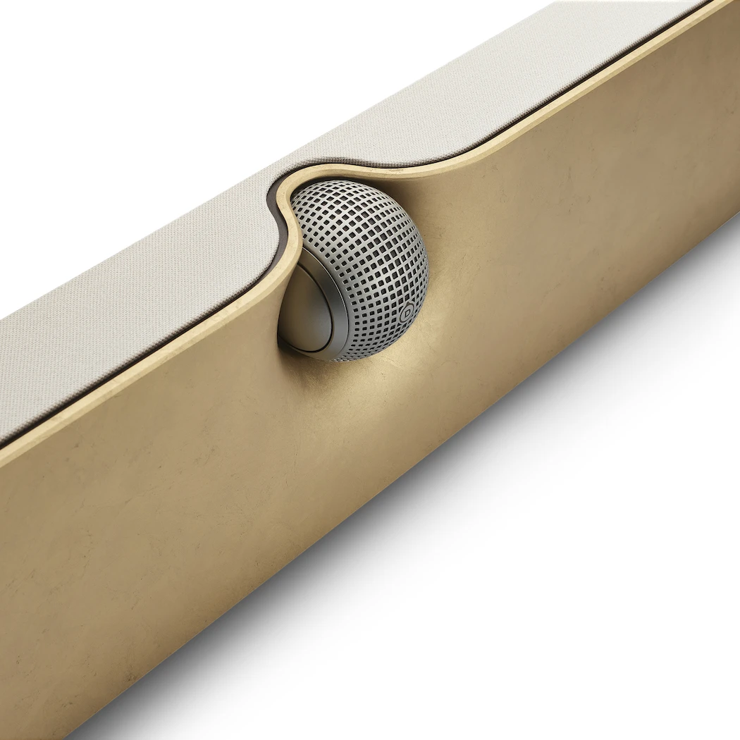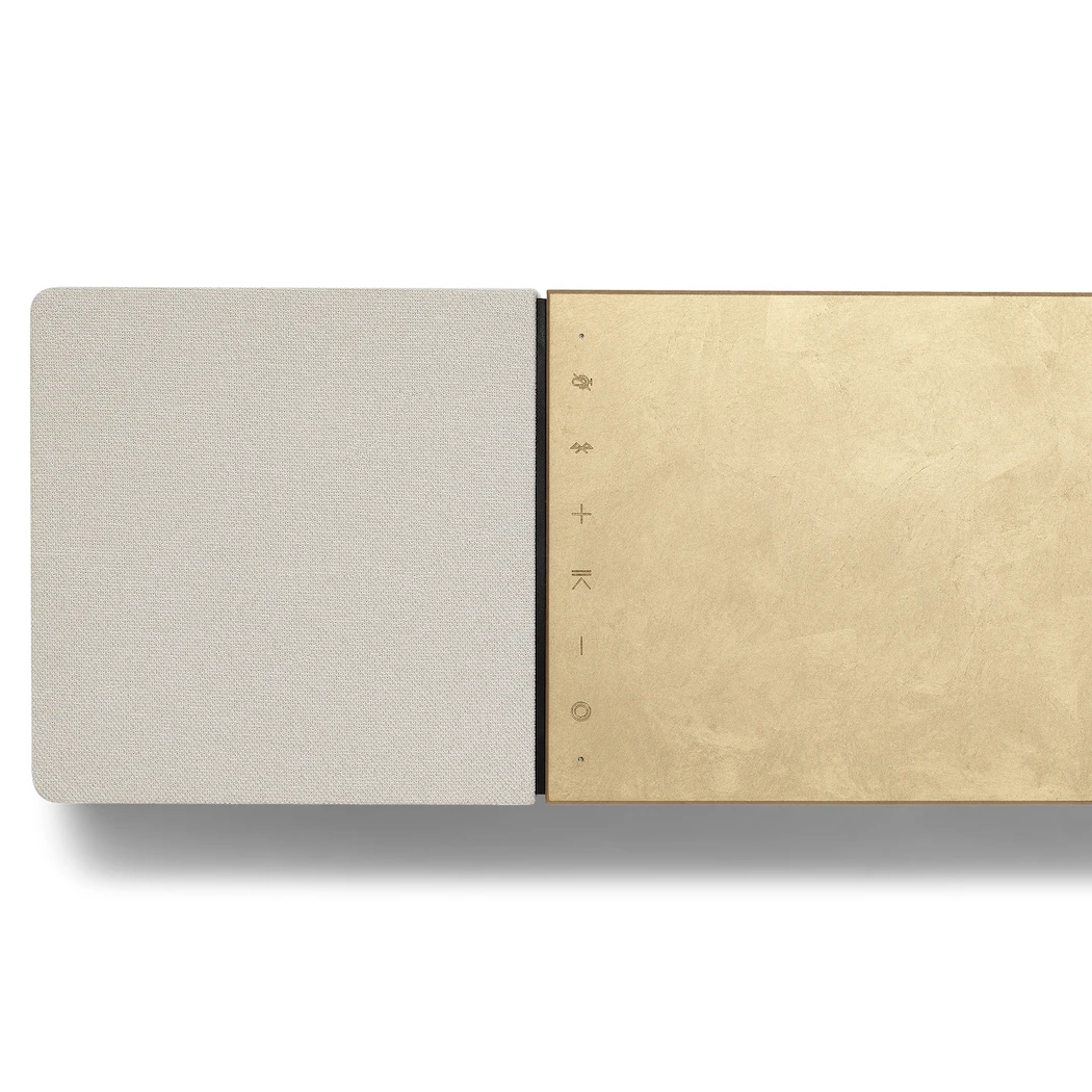 For the Paris Opera, Devialet conceived a special edition of Dione, already an outstanding piece of engineering. Inspired by the iconic gilded interiors of the Opéra Garnier, Dione Opéra de Paris | Devialet features a 22-carat gold leaf central plate. Complementary light grey acoustic fabric completes the look, making this the most beautiful soundbar for your space.