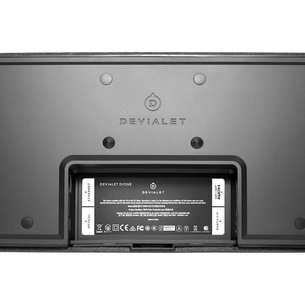 Satellite speakers? External subwoofer? No need to add what’s already built in. Devialet Dione soundbar boasts 17 speaker drivers carefully positioned, including eight internal subwoofers —the highest on the market — making it a true all-in-one sound system.
