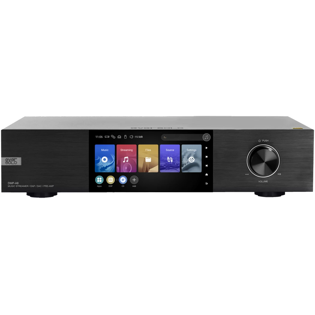 The DMP-A8 directly incorporates popular music services like Tidal, Qobuz, Amazon Music, and more. You can also take advantage of numerous high-quality online music services through their third-party apps, including Spotify and Apple Music. Navigate it all directly via DMP-A8’s touchscreen, or use the EverSolo app.