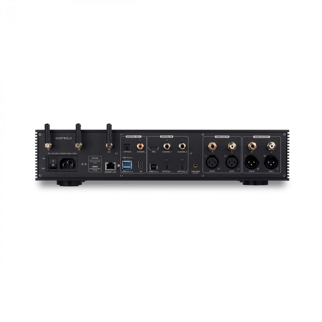 Just as — if not more — important as the DAC chips is how they’ve been implemented in a system. Thanks to EverSolo development engineers’ rich experience in analog circuit design, DMP-A8 has a professional-grade calibration and circuit design. The total harmonic distortion ratio which has been measured is -120dB (0.00009%), while signal-to-noise ratio and dynamic range are 128dB. These indicators are a core foundation for sound quality.