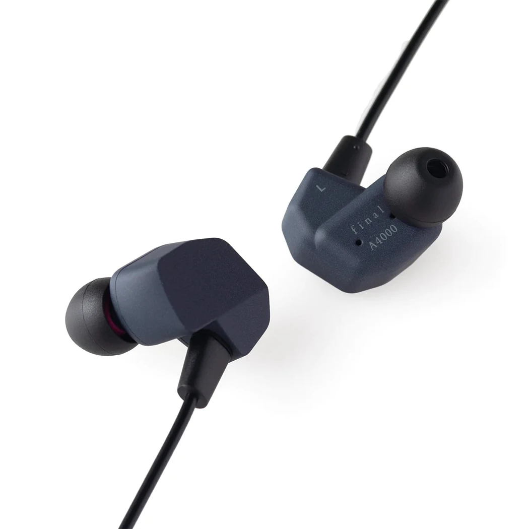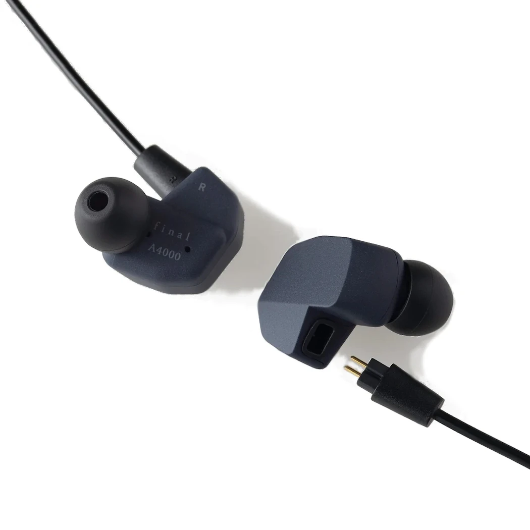 Final A4000 is a lightweight earphone, carefully sculpted to fit many ears. Like a professional custom in-ear monitor used by musicians on stage, it is designed to be worn with the cable hung over the ear, minimizing cable noise and allowing a more secure insertion. By limiting the area that comes in contact with the ear, this product aims to limit discomfort over time by minimizing points of contact.