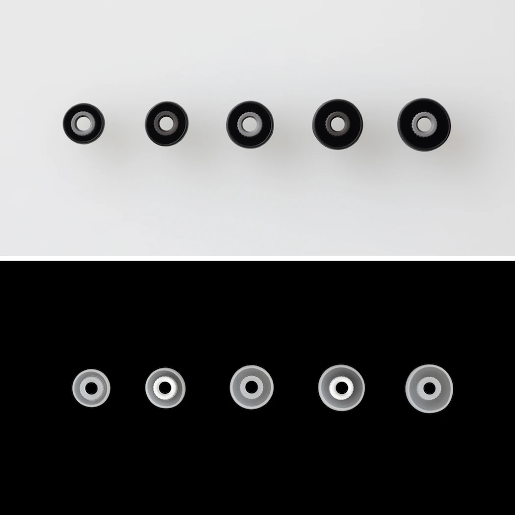 The award-winning TYPE E Truly Wireless ear tips for the Final ZE3000 have been designed from soft silicone for superior comfort and noise isolation. These come in 5 sizes — SS/S/M/L/LL — to ensure a perfect fit that transmits sound directly to the eardrum. Two types of silicon differing in rigidity are employed for the sound conduit and for the earbud that comes into contact with the user’s ear. The silicon used for the sound conduit is more rigid and has grooves, increasing both strength and flexibility.