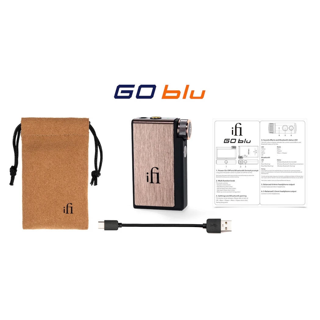 GO blu is iFi’s most diminutive DAC/headphone amp yet. Plug your wired headphones in, then connect wirelessly to your smartphone, tablet, laptop, or other Bluetooth audio source device.