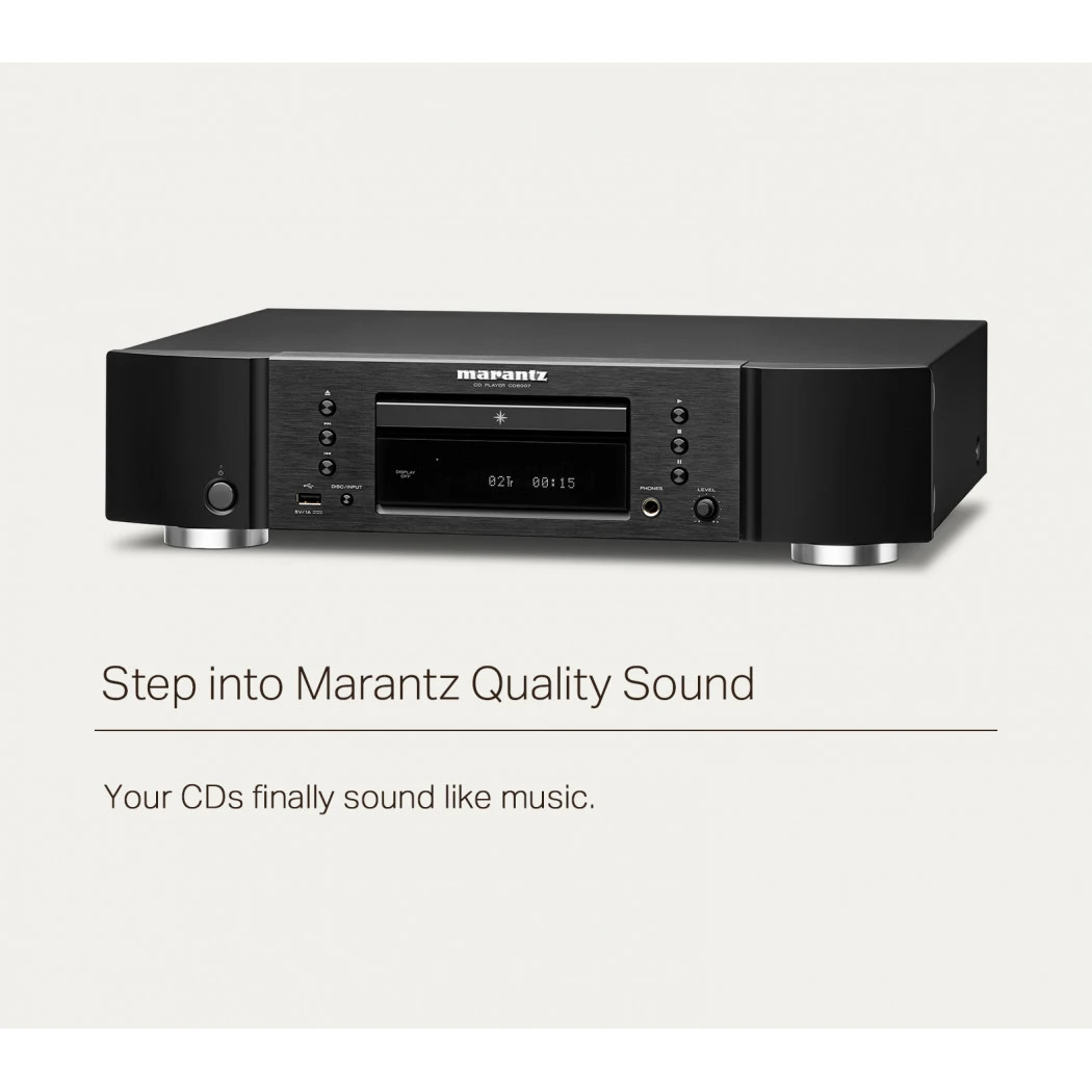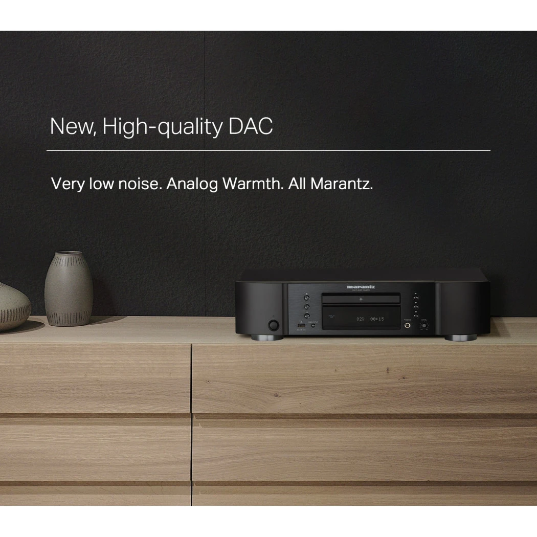 Rigid feet further eliminate unwanted vibration while the oversized low noise power supply feeds the digital and analog circuitry of the player. The new, high-quality AK4490 DAC along with 2 selectable filter options converts digital signals to analog, this is then ‘pushed’ to the gold-plated synch outputs by Marantz’s proprietary small signal amplifier, the HDAM-SA2. In addition, we have included a new remote that also controls the PM6007 amplifier. The CD6007 features a newly-developed, complex headphone amplifier with a headphone amp gain setting to also accommodate a wide range of headphones.