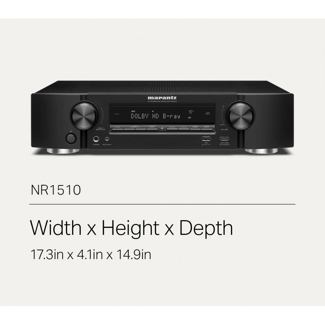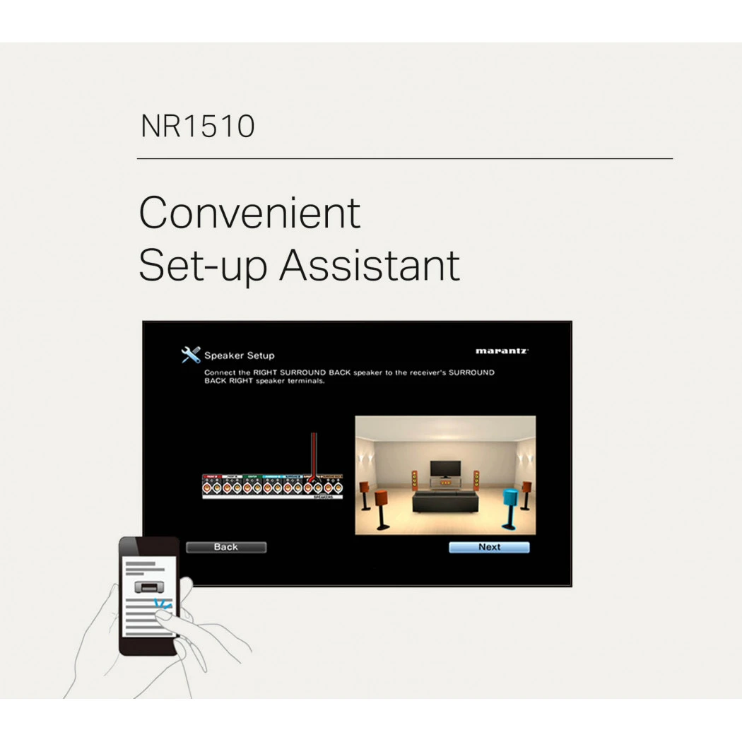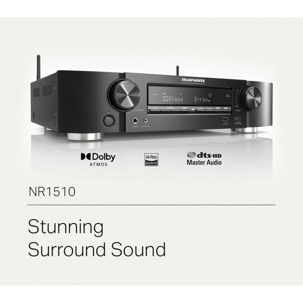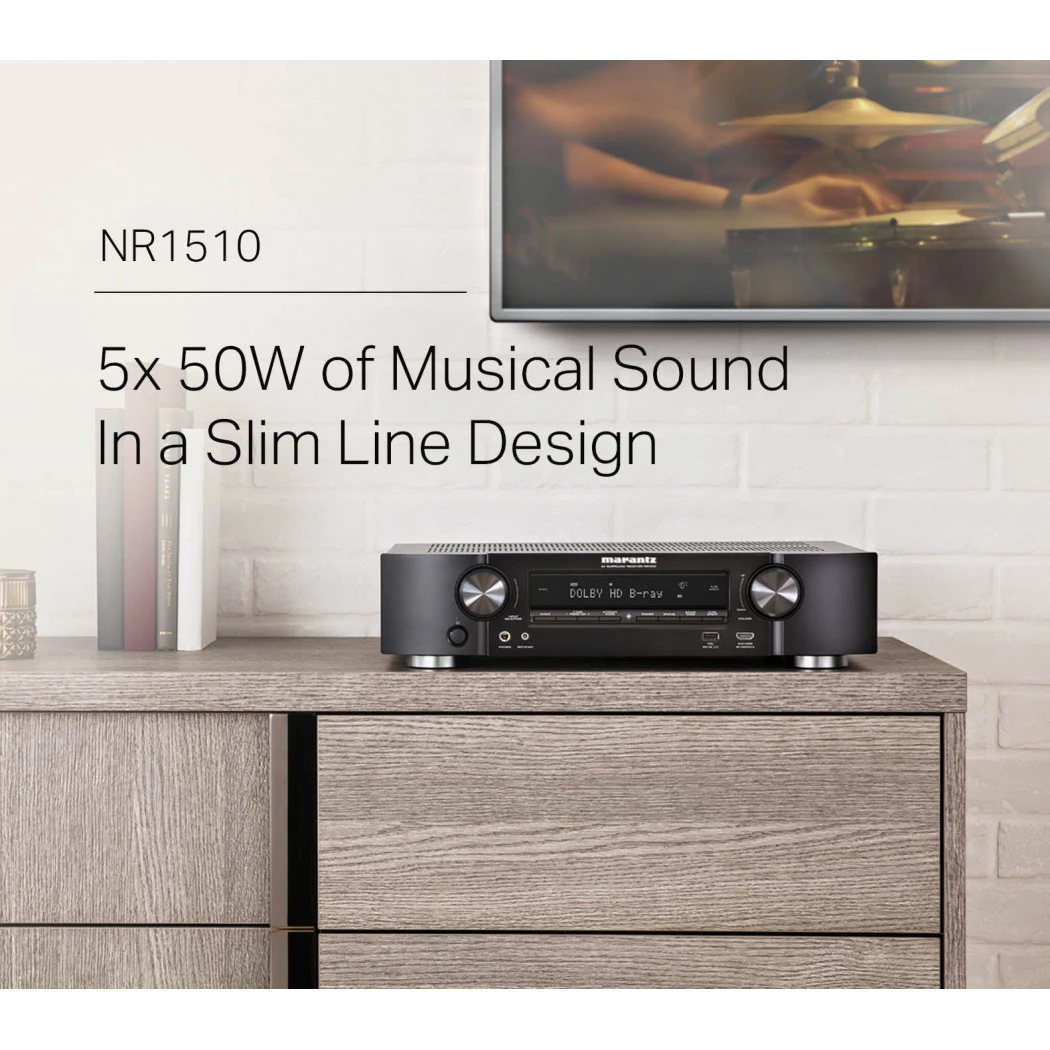 Experience exceptional audio performance from the slim profile Marantz NR1510 5.2ch 4K Ultra HD AV receiver that drives elevated surround sound and high-fidelity audio from a compact chassis.