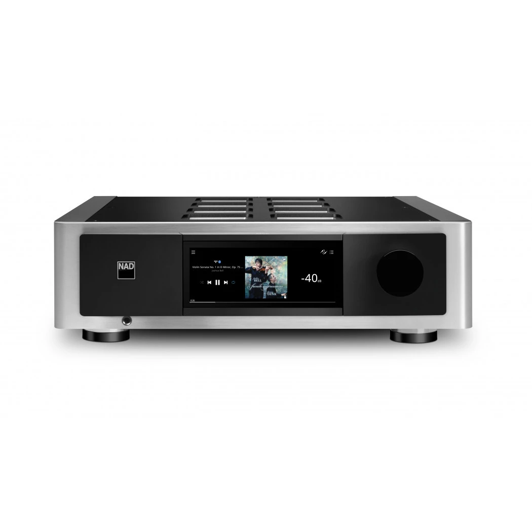 - BluOS network streamer provides access to over 20 streaming services, including several that deliver lossless and high-resolution audio