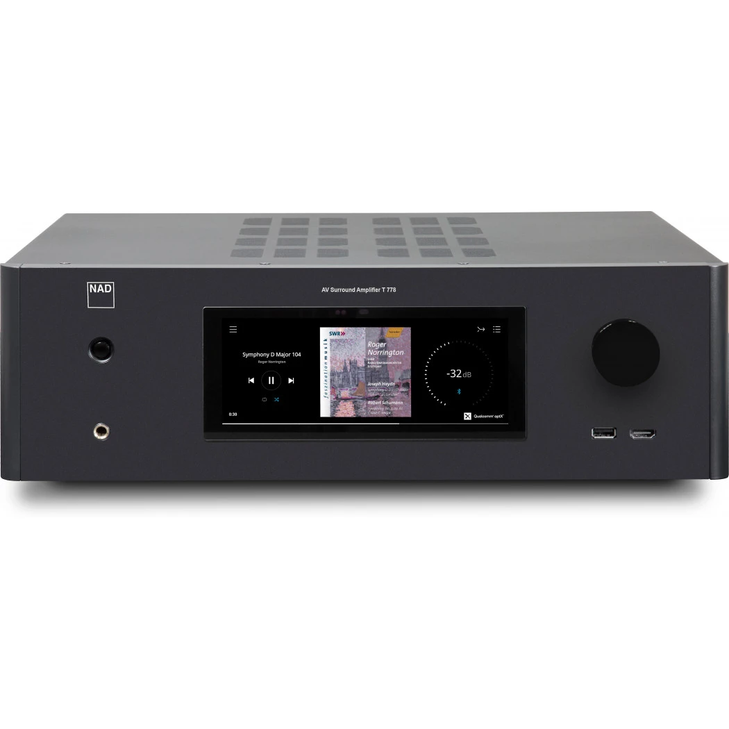 The T 778 represents NAD’s unwavering philosophy of real-world performance, simplicity of operation, and future upgradability. Only NAD offers Modular Design Construction (MDC) for preventing premature obsolescence. Dolby® Atmos and DTS® Master Audio combine with Dirac Live room correction to deliver hyper-realism that captures every dimension of a performance. Add bit-perfect UHD 4K video pass-through and the T 778 delivers incredibly accurate sound and image. Musical performance is outstanding with High Res Multi-room streaming via BluOS and nine channels of high current amplification capable of powering any loudspeaker to its maximum potential.
