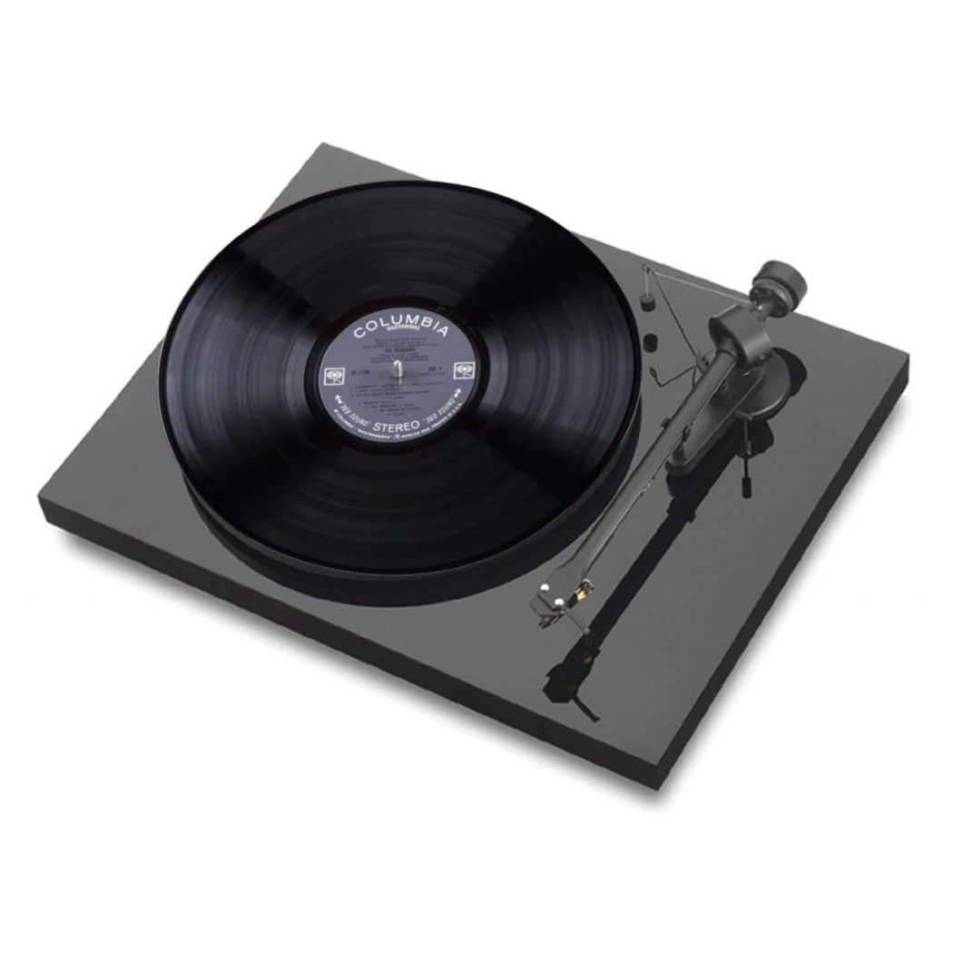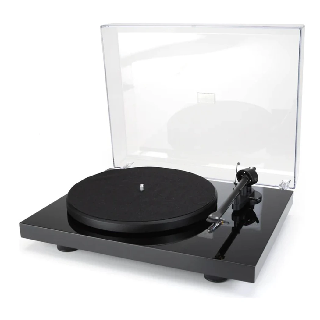 The Debut III turntable includes a Pro-Ject 8.6 inch one-piece aluminum tonearm, a heavy two-piece 10″ steel platter with felt mat, and an Ortofon OM 5E moving-magnet cartridge.