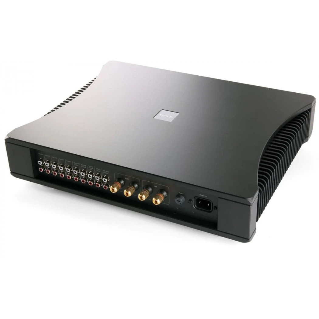 The Aethos stereo amplifier is housed in a brand new, custom designed case. Employing four 160 W 16 Amp output transistors per channel, this delivers 156 W per channel into 6 Ω. The Aethos is a dual mono design using a custom wound toroidal transformer and regulated supplies for the sensitive amplification and driver stages. The pre-amplifier stage uses class-A discrete circuitry throughout. The Aethos is a no compromise product with one goal, to deliver your music as faithfully as possible.