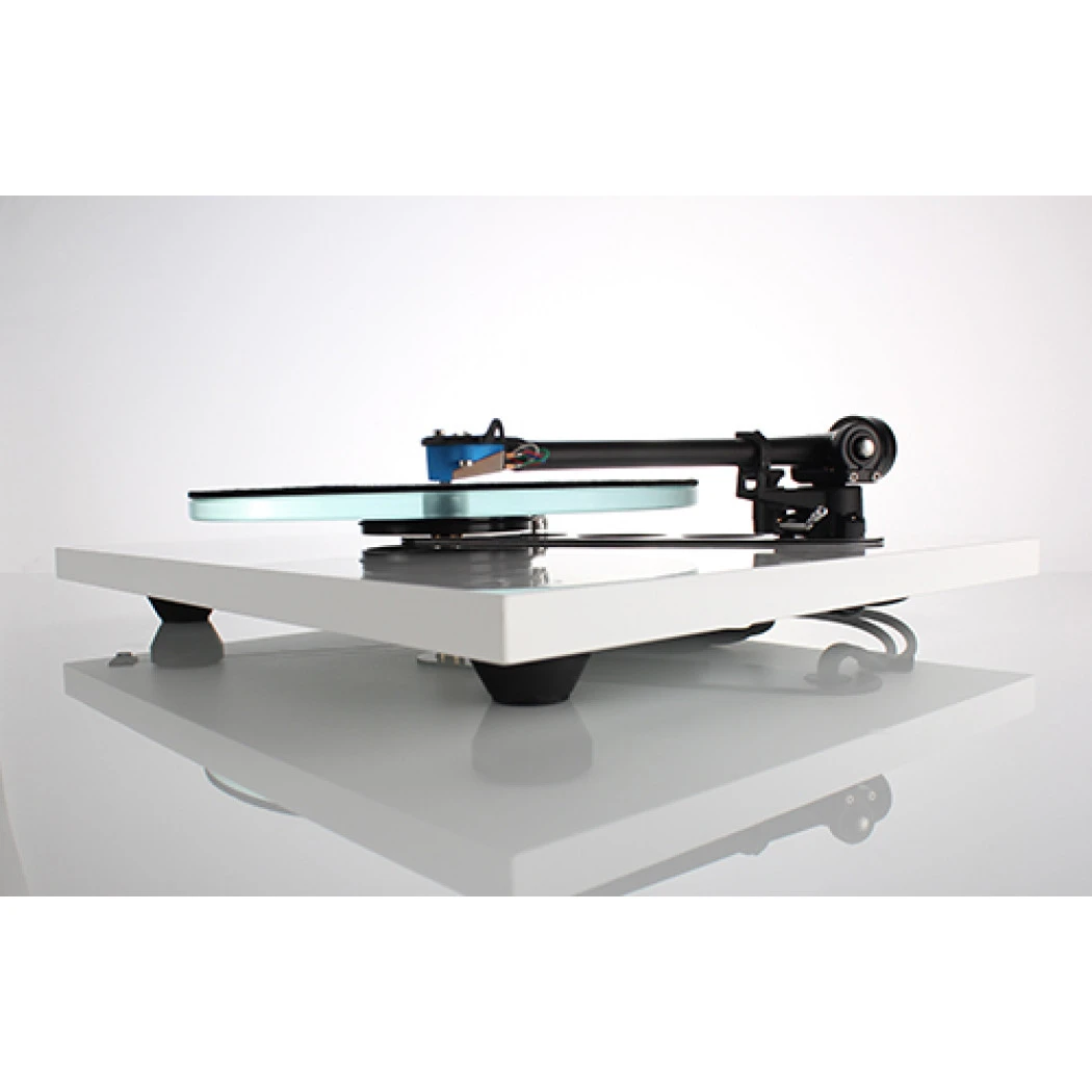 A lightweight acrylic laminated plinth strengthened using a new improved double brace system mounted specifically where the increased rigidity is required (between the tonearm mounting and the main hub bearing) which forms a structurally sound “stressed beam” assembly. This rigid plinth design prevents energy absorption and unwanted resonance, which will add unnatural distortions to the music. Equally, heavier mass can transfer more unwanted energy, such as motor or bearing noise directly into the rotating record. The use of braces instead of the complete skin allows double thickness phenolic resin in these key areas while providing further weight reduction to the plinth which directly addresses the issue of mass absorption and unwanted energy transmission.