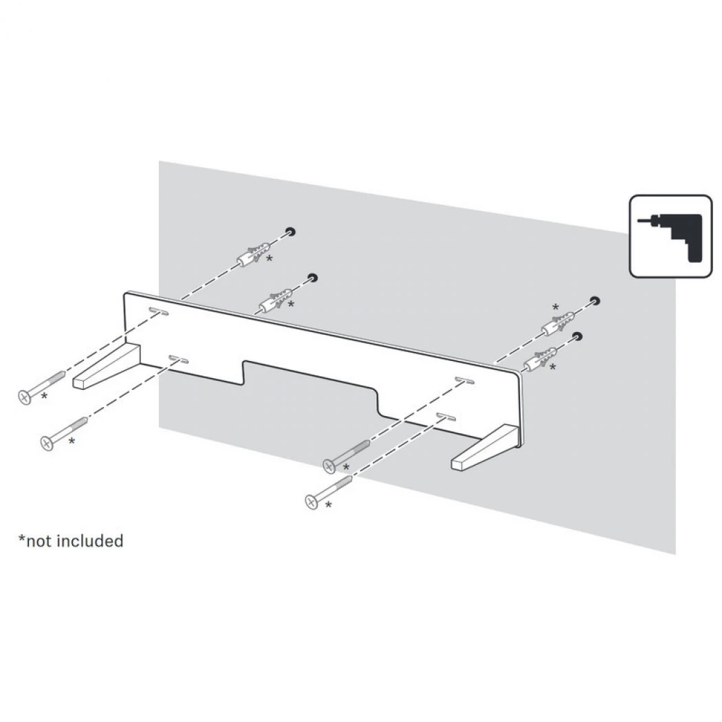 Screws for affixing the wall mount to the wall are not delivered with the soundbar, as different wall materials will require different screw types.