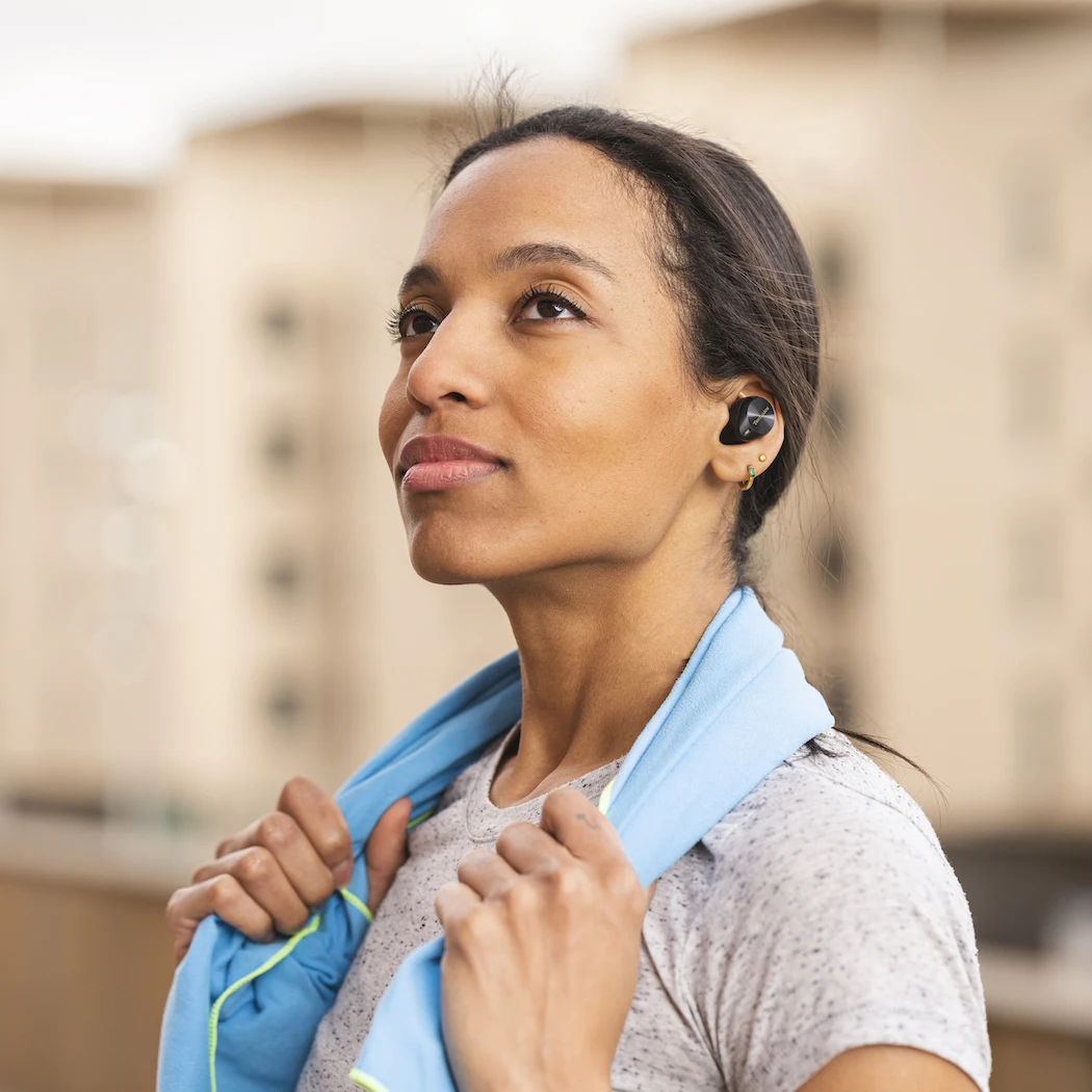 Our flagship true wireless earbuds, the powerful, noise cancelling AZ80 earbuds feature epic, reference-quality high-resolution audio; advanced, industry-leading noise cancellation; and improved JustMyVoice™ technology to keep calls clear and minimize outside interference. Connects to 3 devices simultaneously — an industry first.