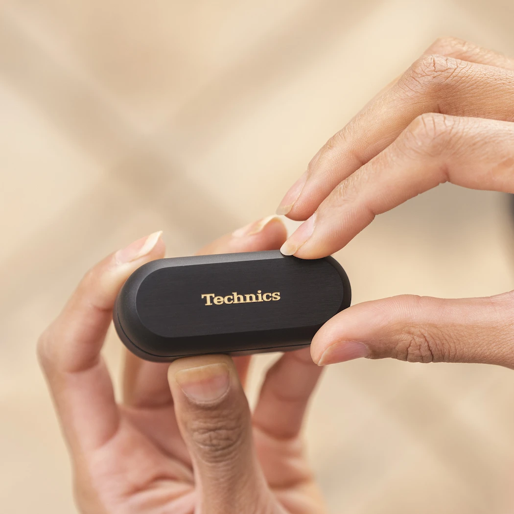 The earbuds feature a sleek aluminum trim, with engraved Technics logos, for a reassuringly crafted and tactile experience.
