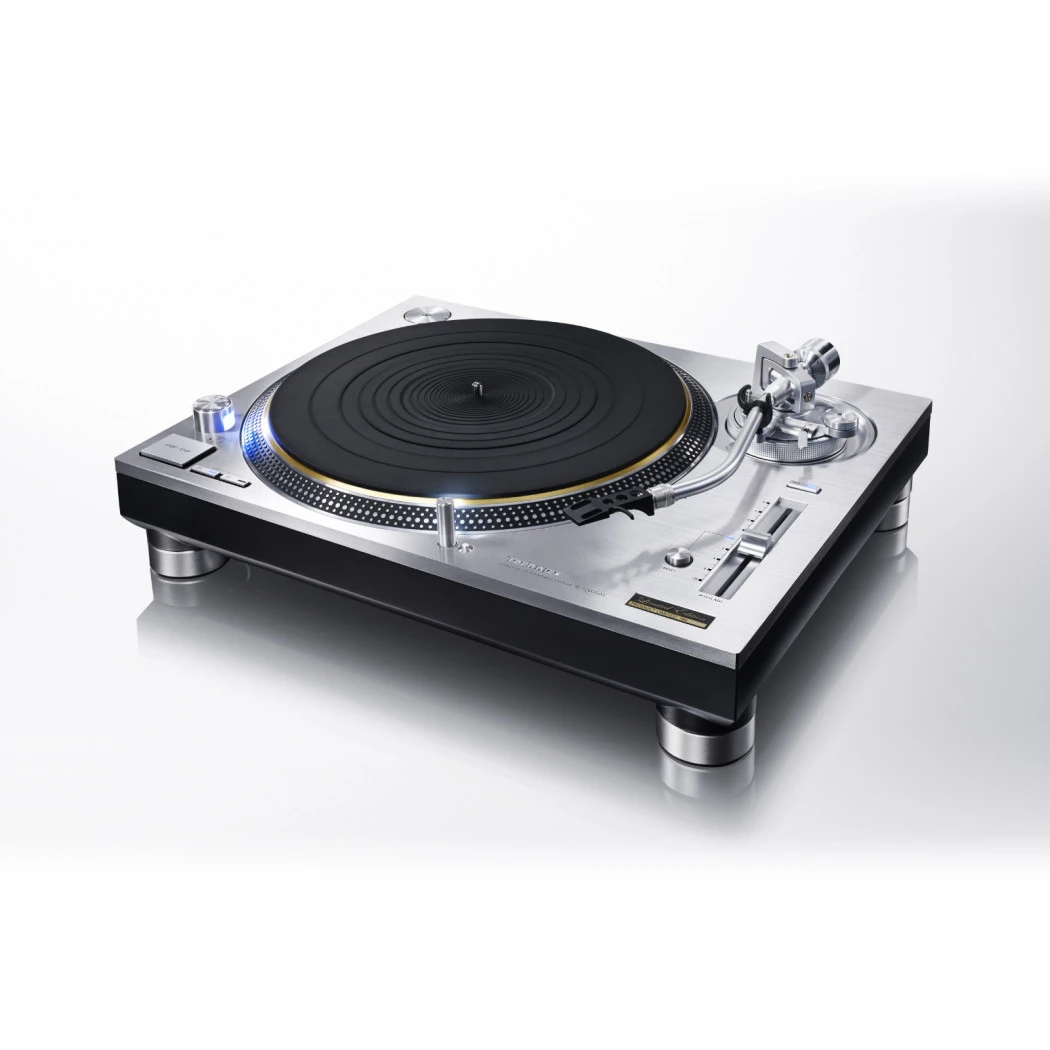 The flagship in the iconic 1200 series, the Technics SL-1200G turntable sets an incredibly high standard standard. While it looks familiar on the outside to previous generations, only the dust cover remains the same — every other component on the inside has been redeveloped to create the highest performance direct-drive turntable.